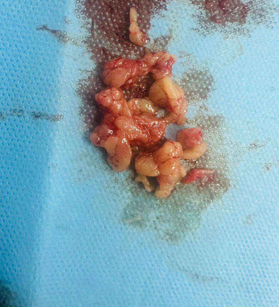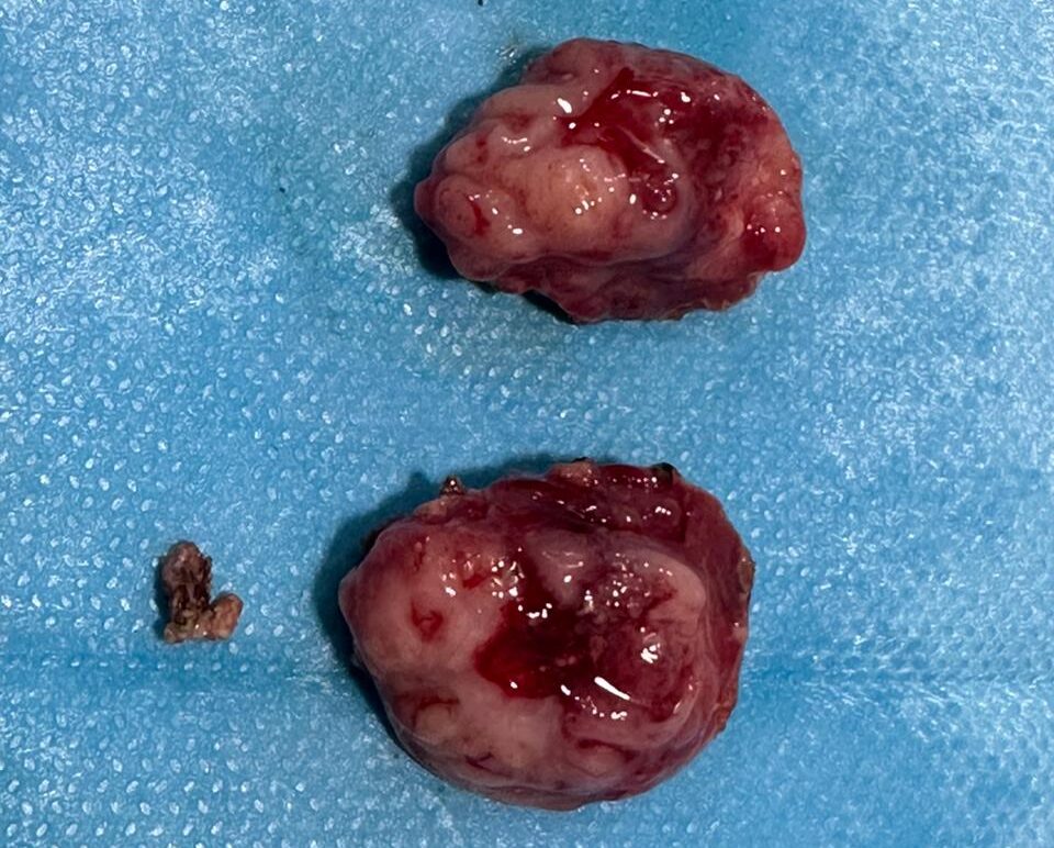 Traitement : Retrait chirurgical sous anesthésie générale, suivi d’une récupération rapide.